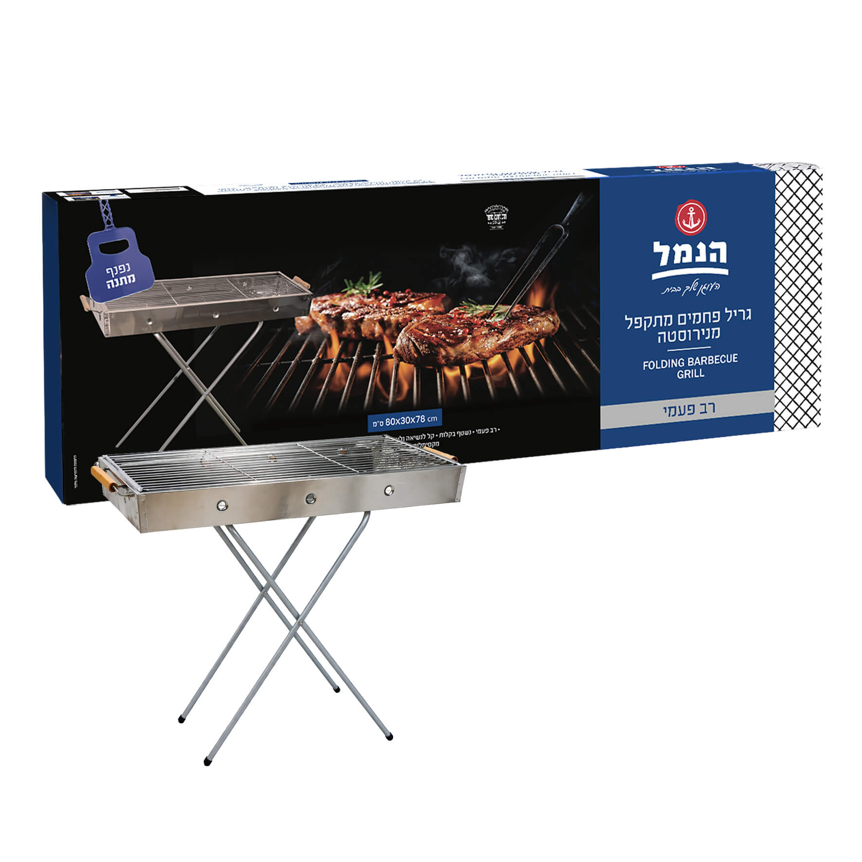 גריל פחמים מתקפל מנירוסטה